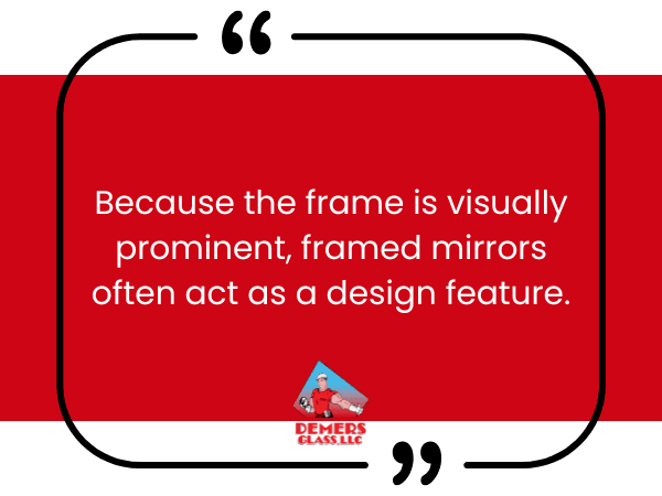 Framed mirrors consist of standard mirror glass mounted inside a surrounding frame. The frame may be permanently attached or designed to allow for replacement or customization.
