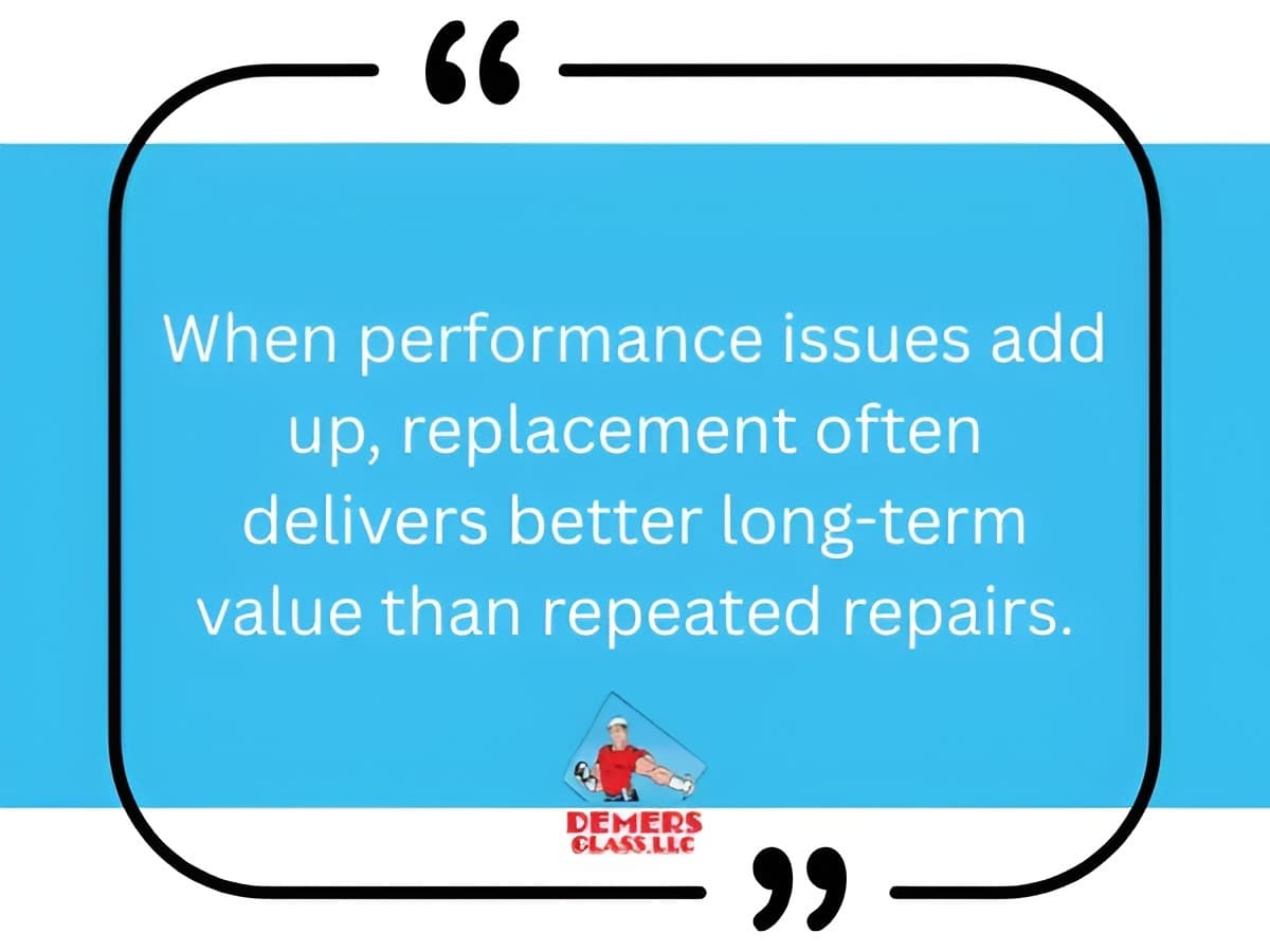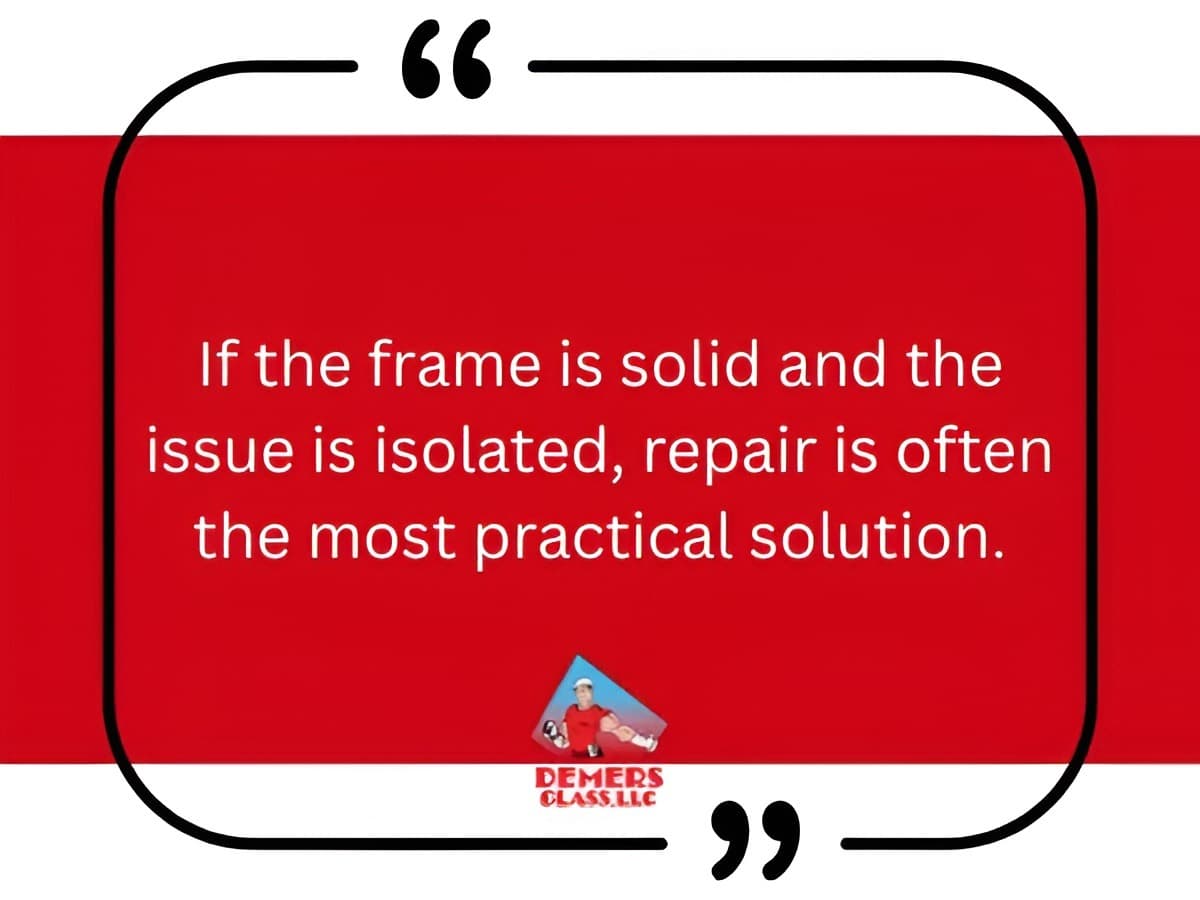 Repair is usually the better option when the frame is sound, the issue is limited, and the glass system still performs well. Common examples include broken hardware, worn balances, and minor sealant failure. If the damage is isolated and doesn’t affect the overall structure, a repair can often restore functionality.